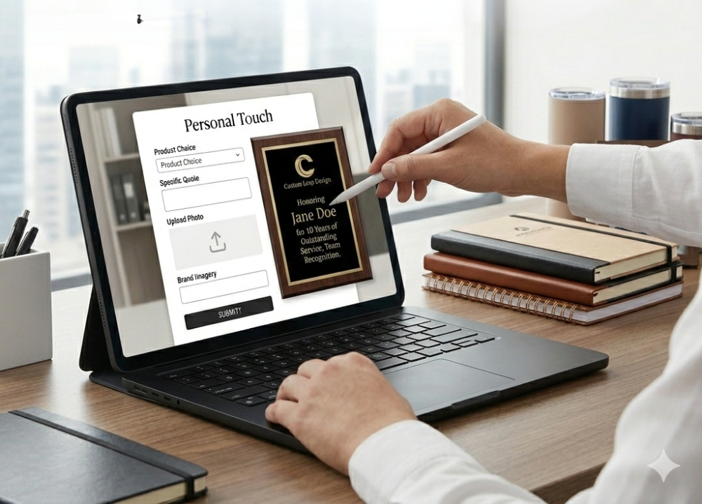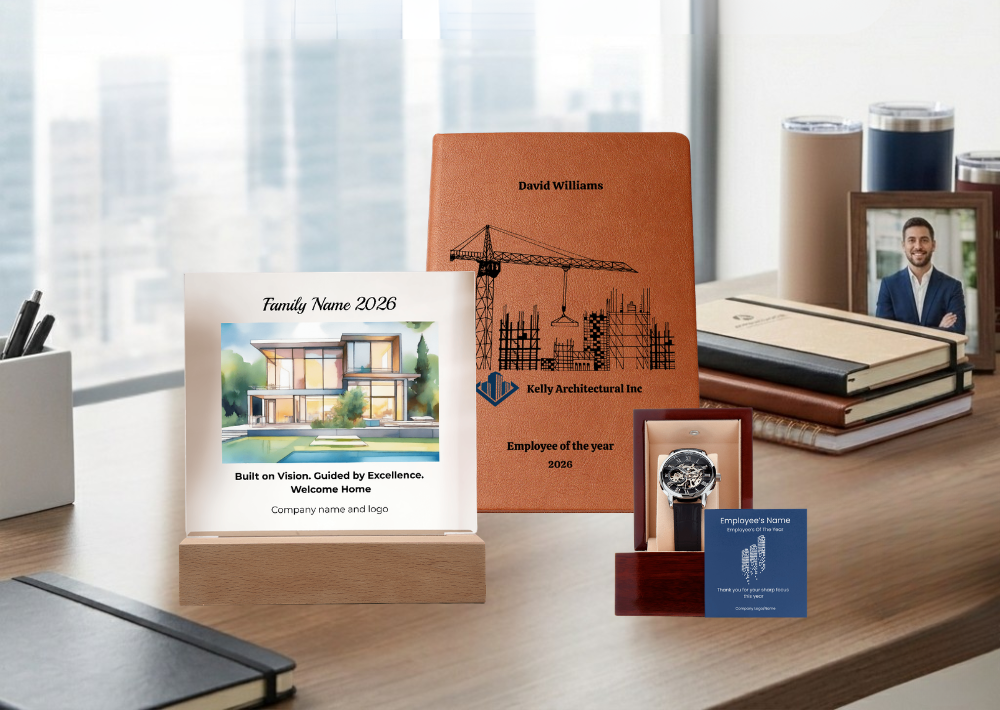 Choose any item from our business collections—from premium journals and acrylic awards to custom message watch
